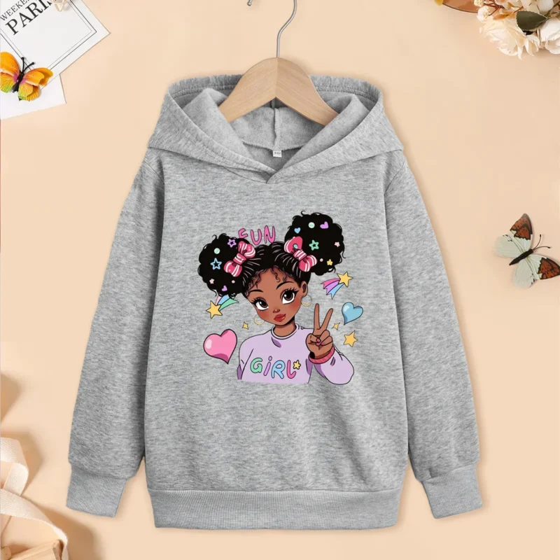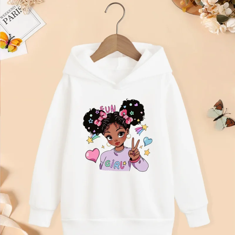 Girls’ Casual Cartoon Hoodie Sweatshirt for Girls Fashion Kawaii Long Sleeve Top Pullover Sweater For Children Kids