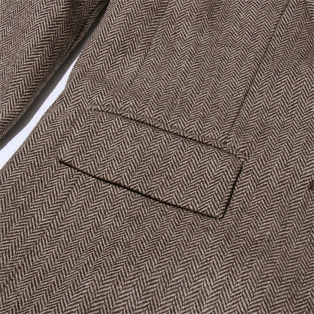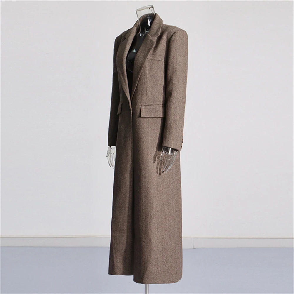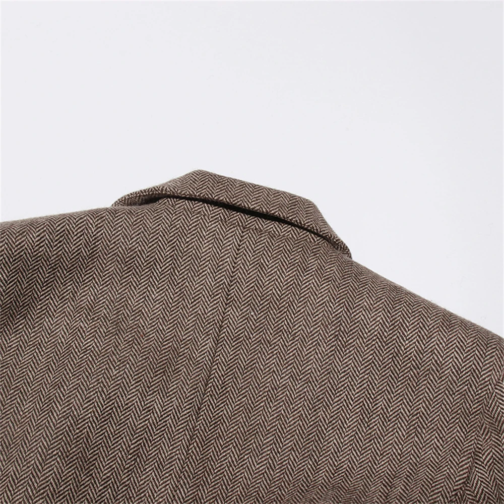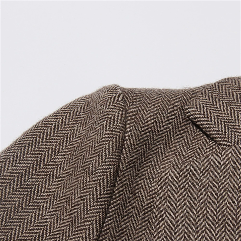 Chevron Long Suit Jacket for Women Long Sleeves Peaked Lapel One Button Camel Women’s Suit Blazer Vintage English Style Coat