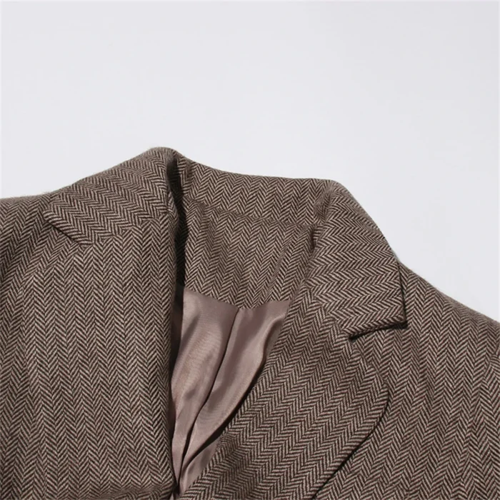 Chevron Long Suit Jacket for Women Long Sleeves Peaked Lapel One Button Camel Women’s Suit Blazer Vintage English Style Coat
