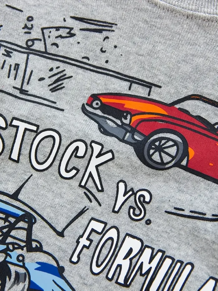 Kids Boys Pajamas Cartoon Car Print Plaid Stitching Round Neck Long Sleeve Top & Pants Set