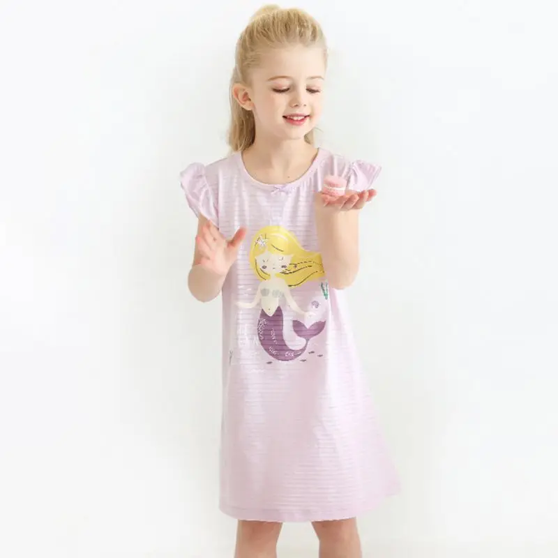 Kids Dress Summer Girl Nightgown Cotton Mermaid Print Short Sleeve Child Princess Sleepwear Toddlers Pajamas Children’s Clothing