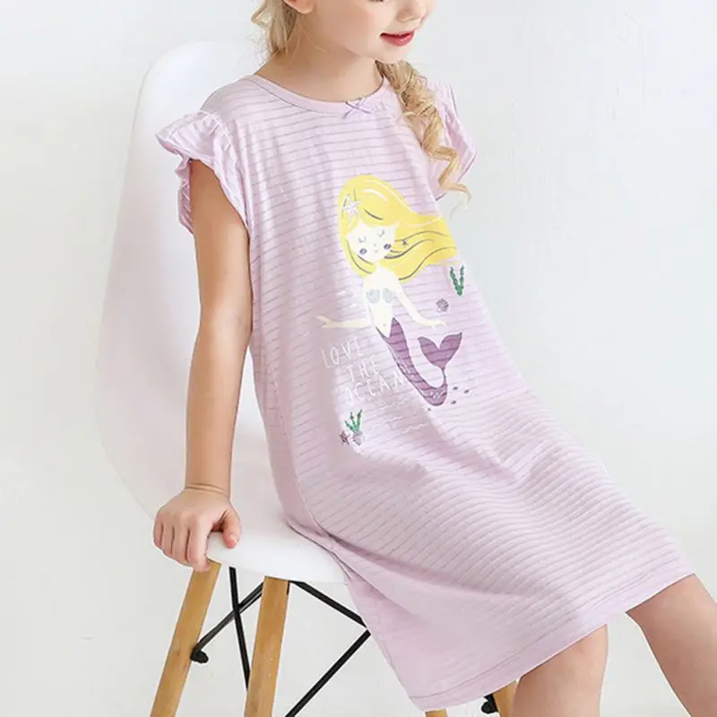 HomeChildrenGirls ClothingGirls Nightwear & Underwear Kids Dress Summer Girl Nightgown Cotton Mermaid Print Short Sleeve Child Princess Sleepwear Toddlers Pajamas Children’s Clothing