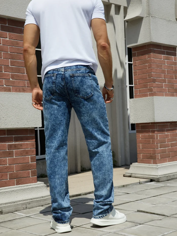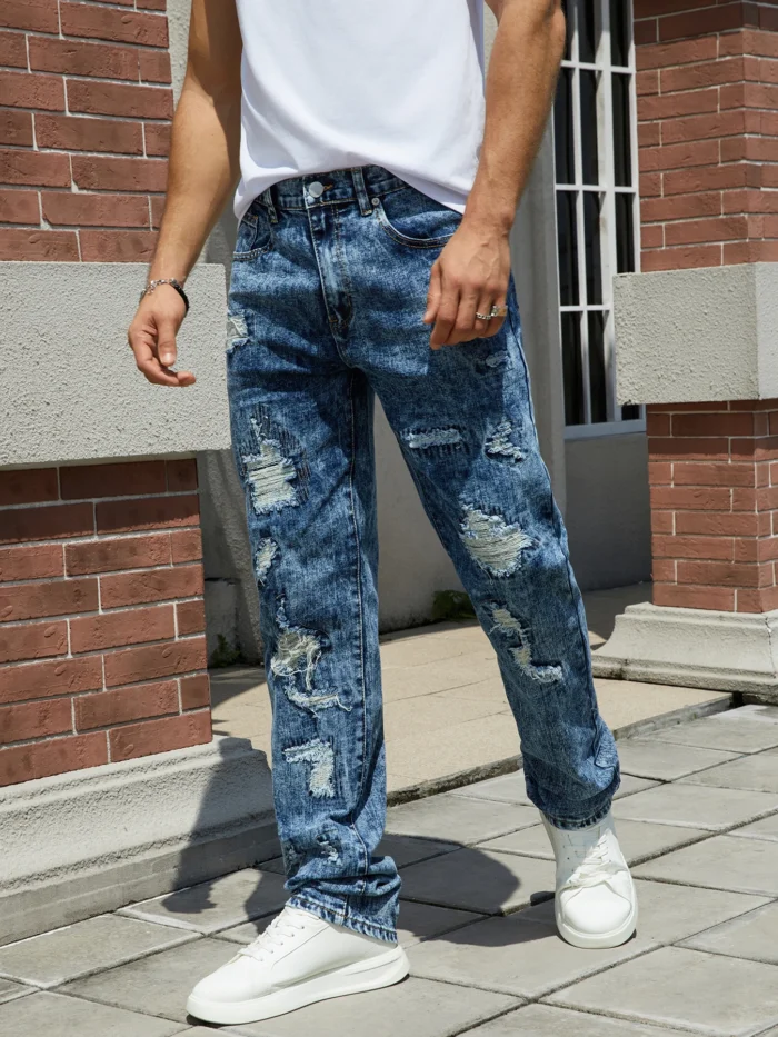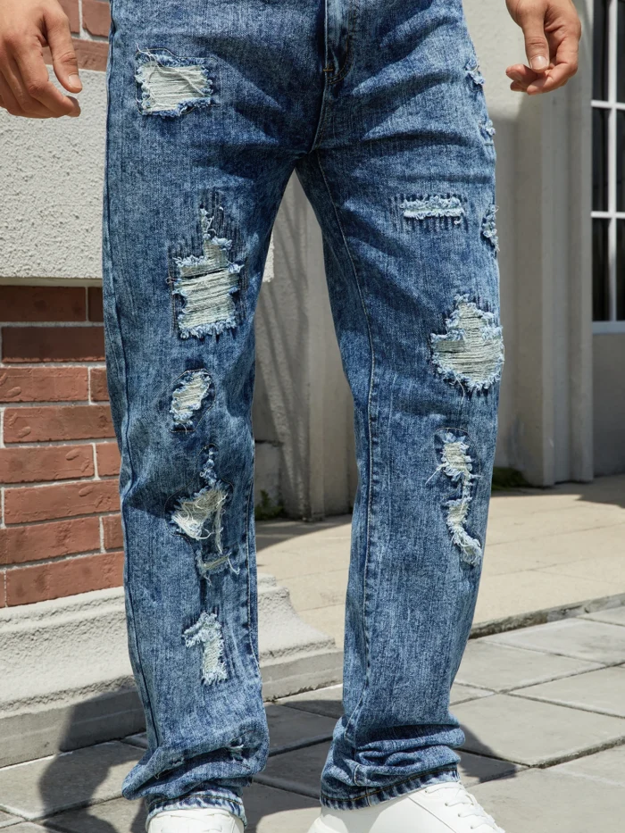 Be the first to review “Men’s denim stretch pants, full of holes, trend stir-fried rinse water, embroidery car chaos, slim-fit style, street rock-121BLU” Cancel reply