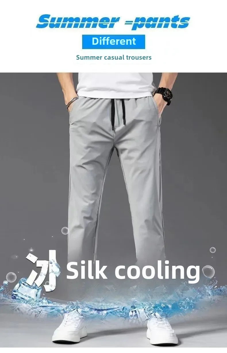 • Ice Silk Material :Crafted from premium ice silk material, these pants offer a cool and comfortable wear, perfect for the summer season.