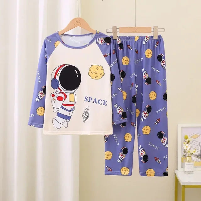 Boys Dinosaur Astronaut Pattern Homewear Suit Children Toddler Cartoon Underwear Pajamas Long-sleeved Top + long Pants Two-piece