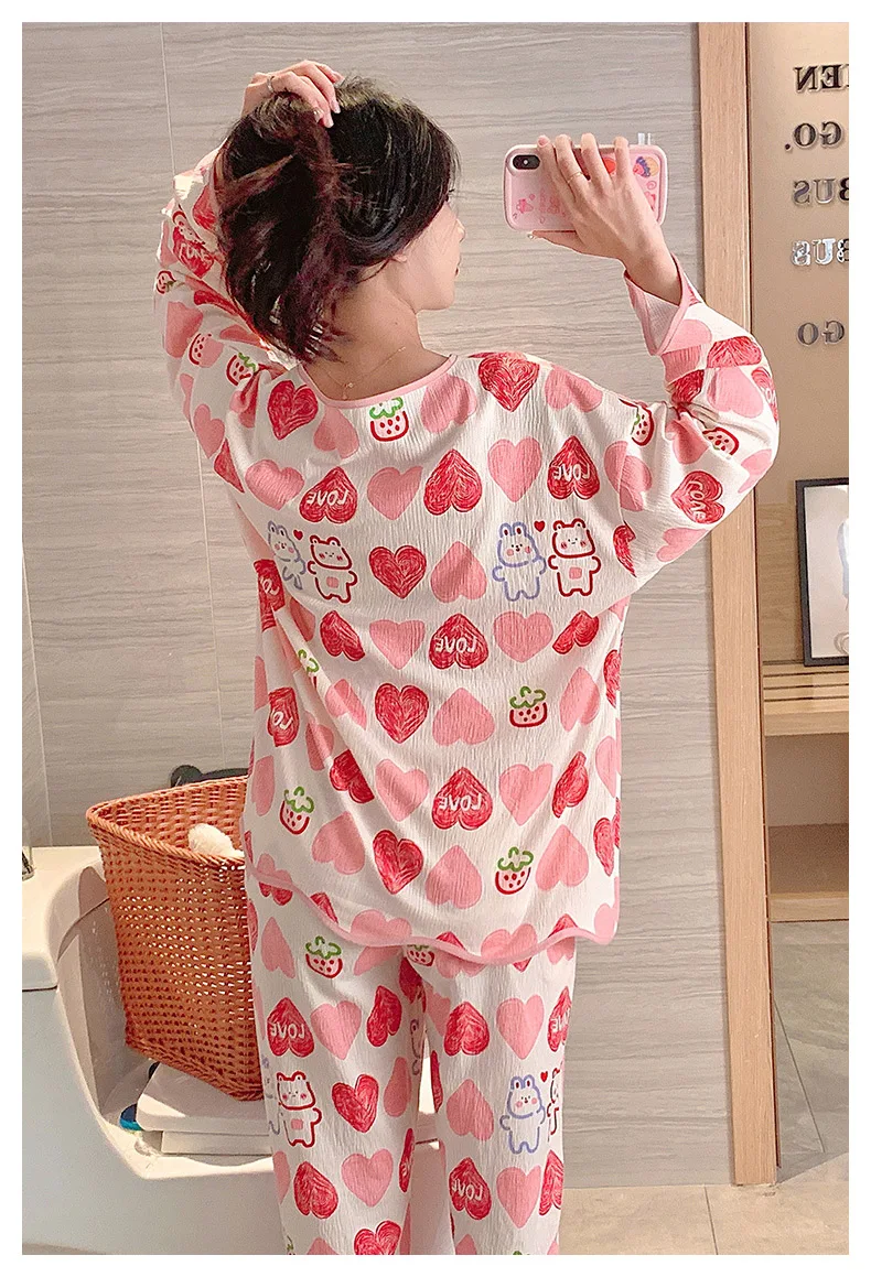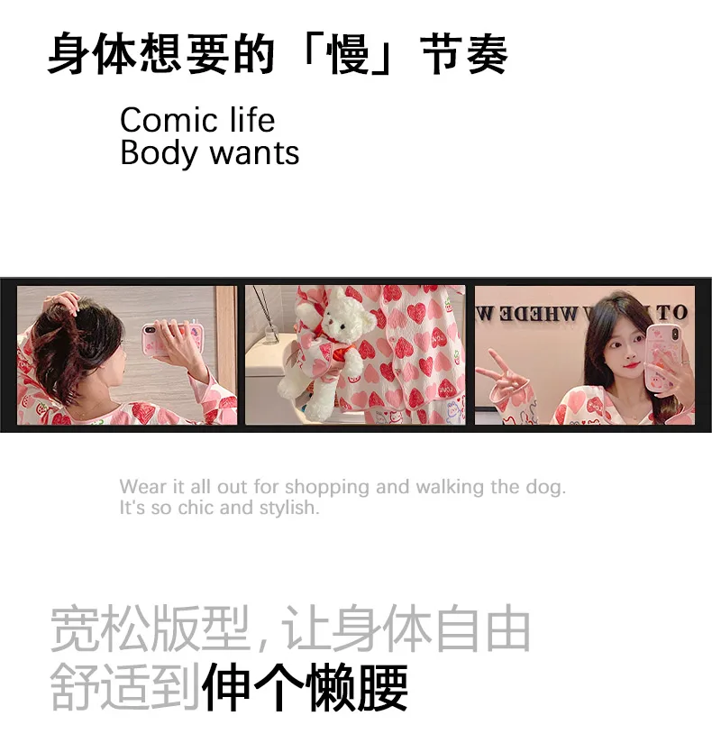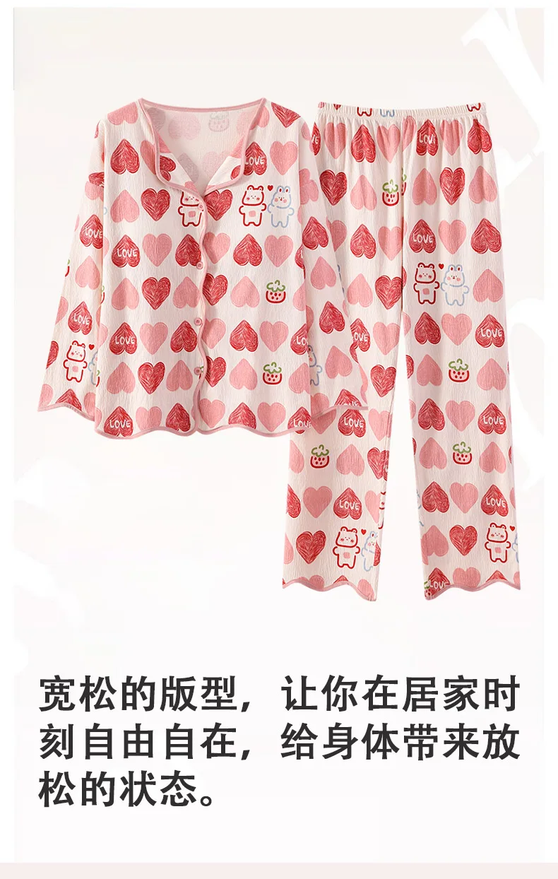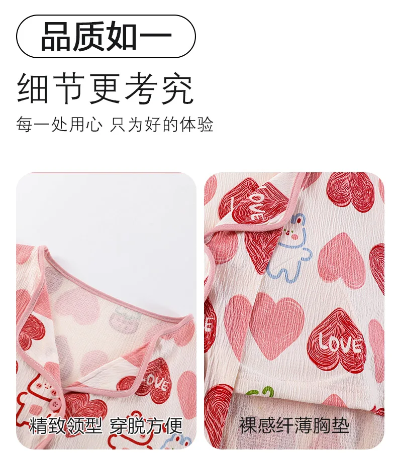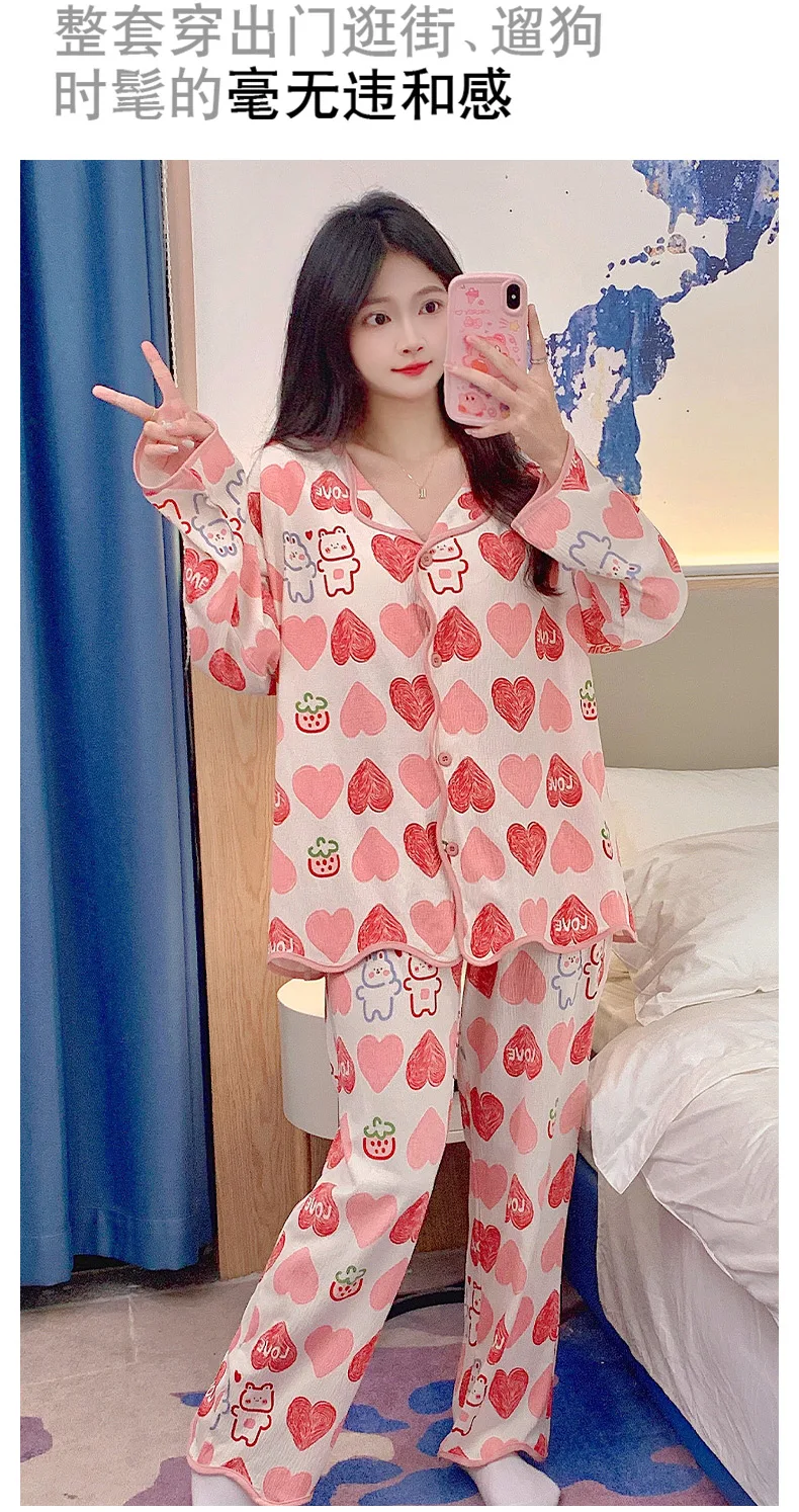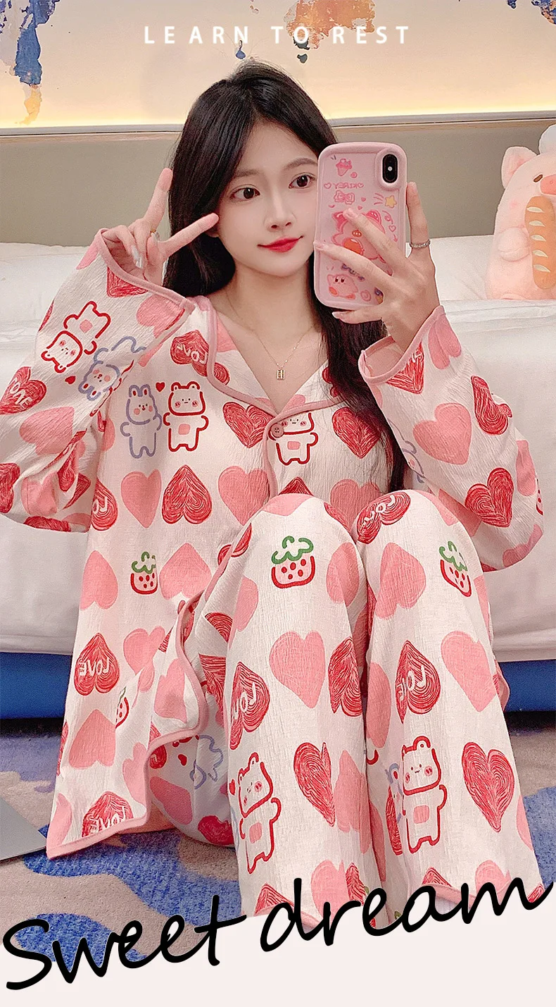 New Autumn Cute Bear Print Pajamas for Girl Fashion Pajama with Bra Pads Long Sleeves Cardigan Sleepwear Soft Woman Nightwear
