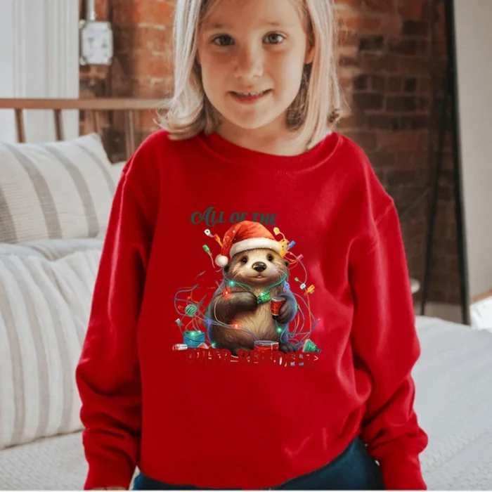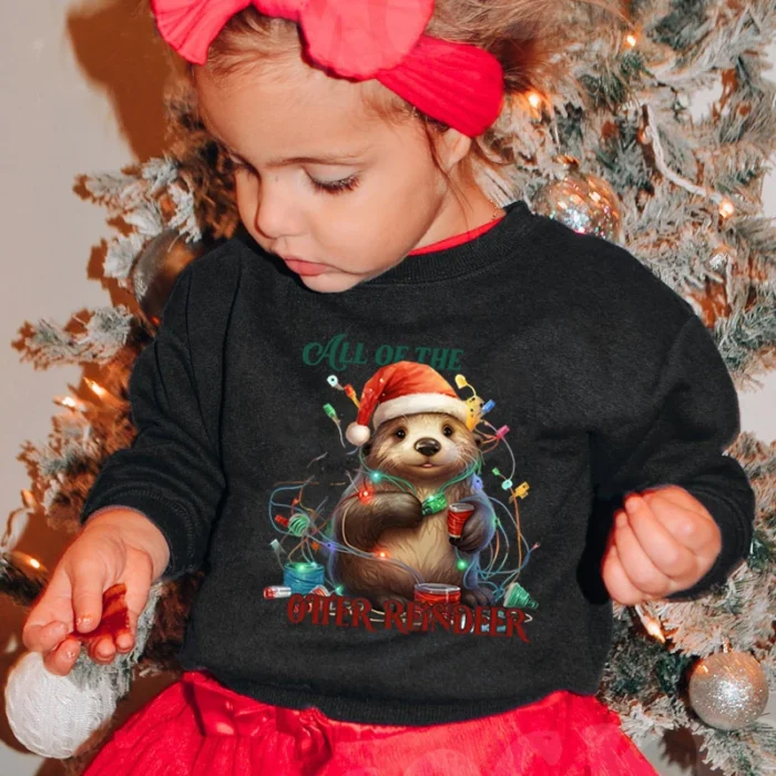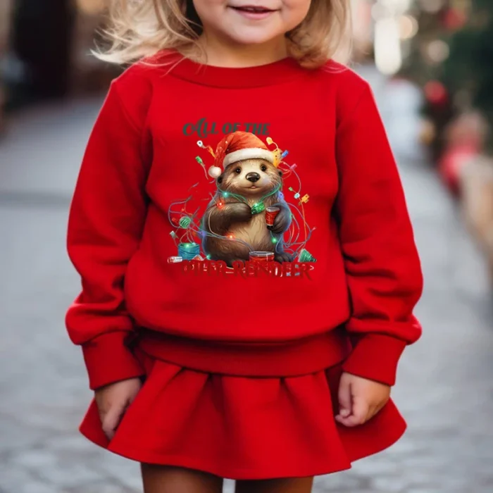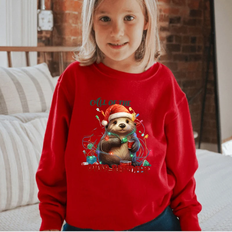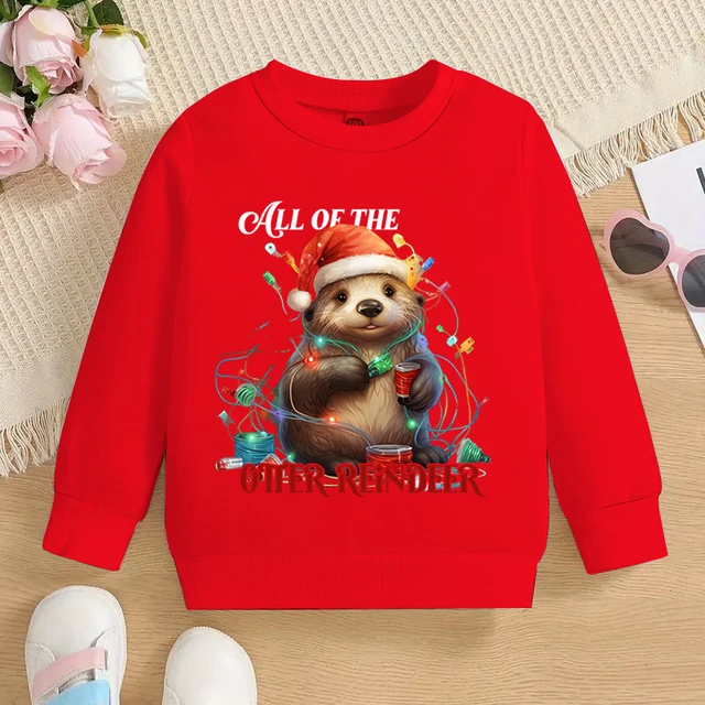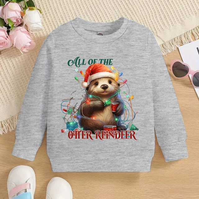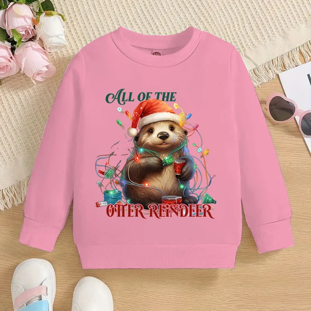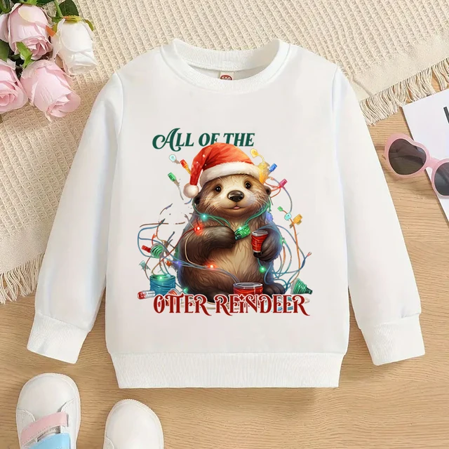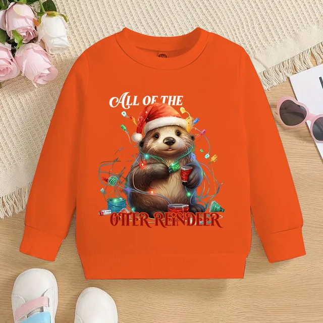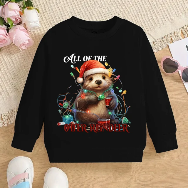 HomeChildrenGirls ClothingGirls Hoodies & Coats New Autumn Winter Christmas Otter Print Sweatshirt Kids Funny Cartoon Otter Long Sleeve Pullovers Boys Girls Xmas Gifts Hoodies