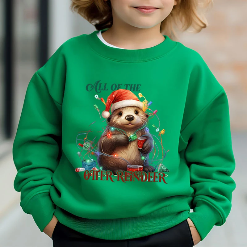 New Autumn Winter Christmas Otter Print Sweatshirt Kids Funny Cartoon Otter Long Sleeve Pullovers Boys Girls Xmas Gifts Hoodies