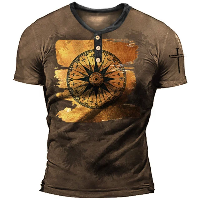 HomeMenMen's T-Shirts Summer Men’s T-shirt 3d Compass Retro HD Printed Short Sleeve Personality Trend Top Street Oversized O-neck Comfortable Clothing