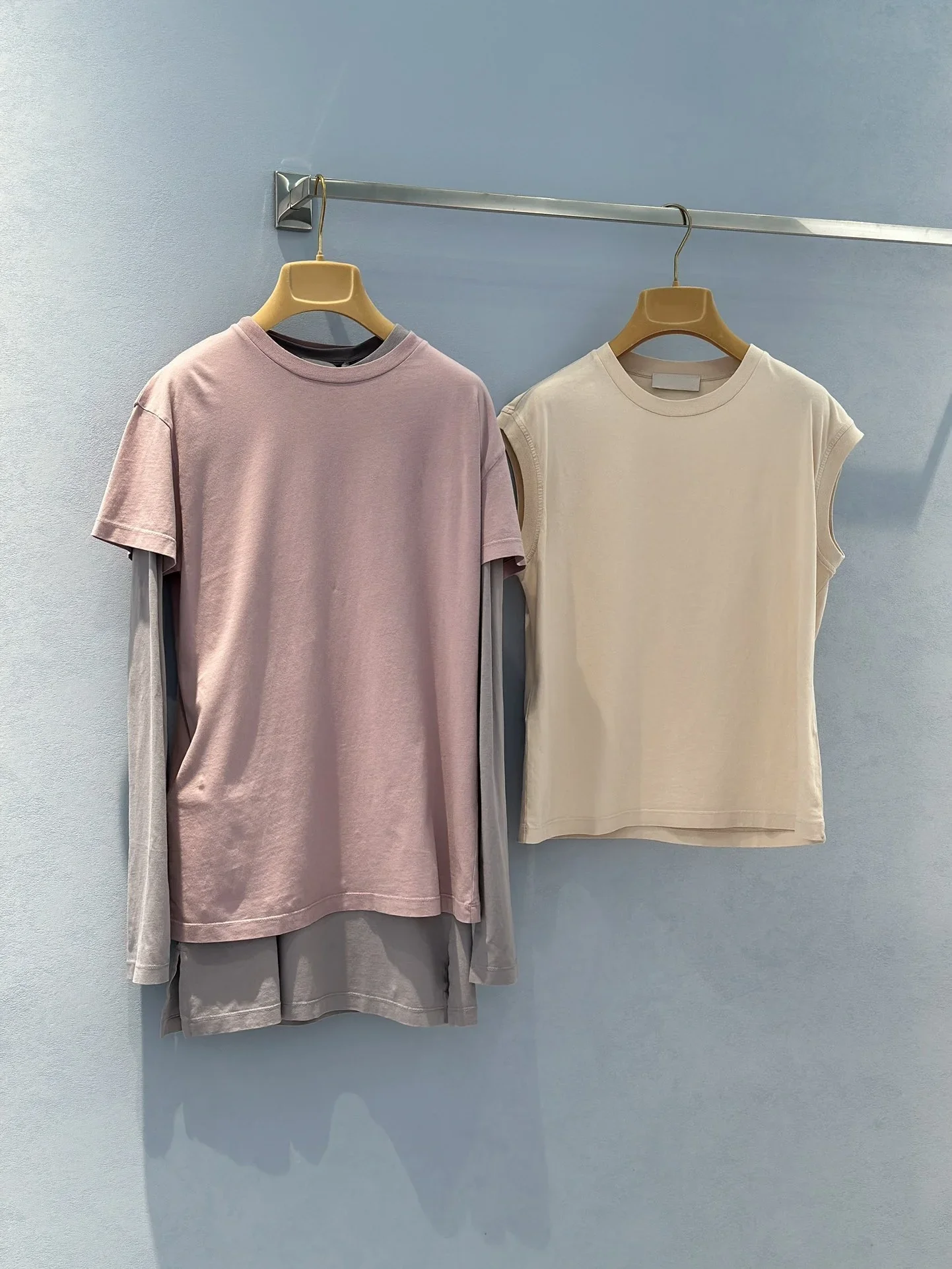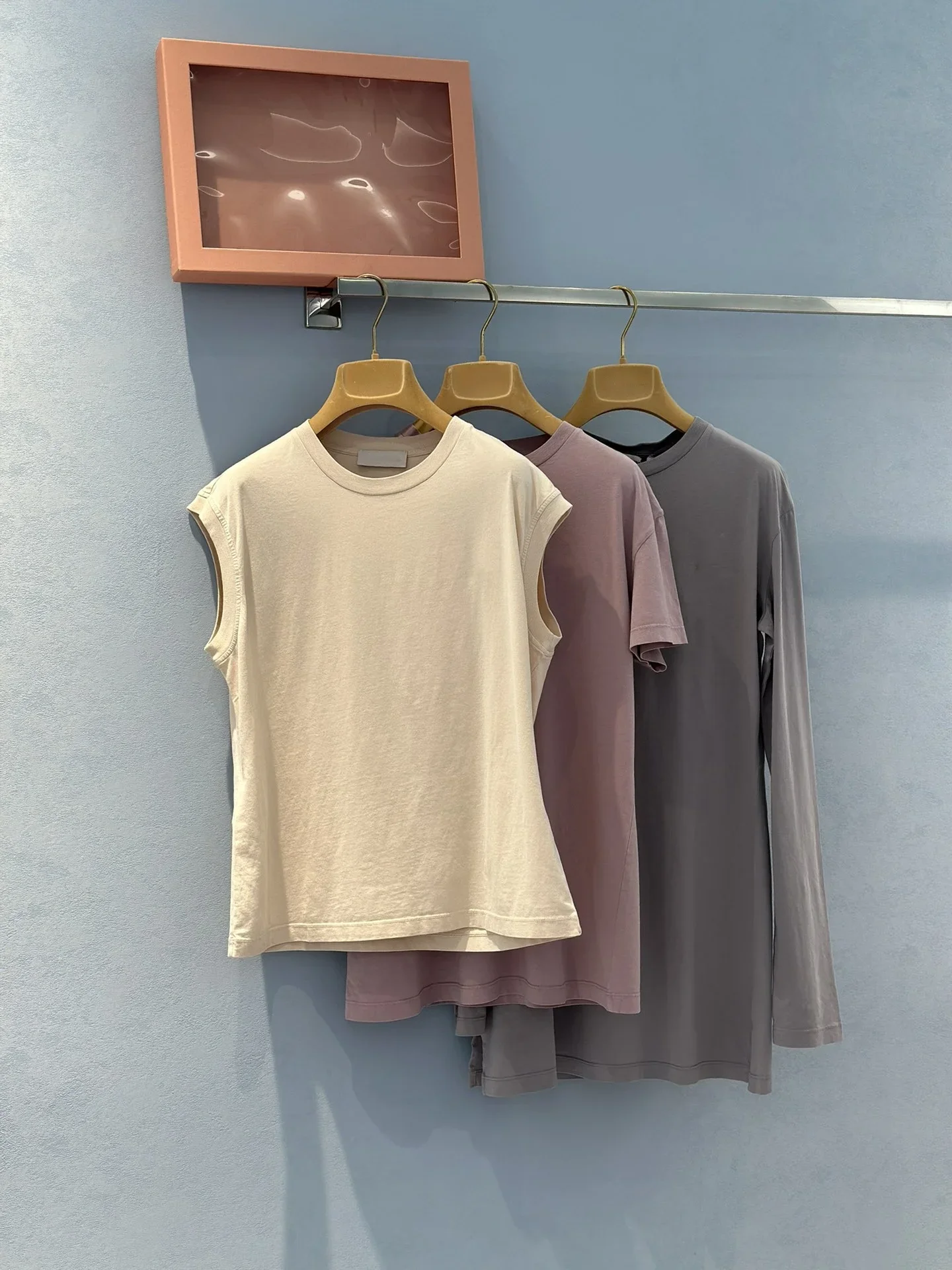 Mulberry Silk Cotton T-shirts Women Solid O Neck Top Summer Short Sleeve Tees Basic Soft T-Shirts Loose Style Korea Fashion 2024