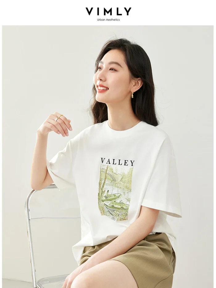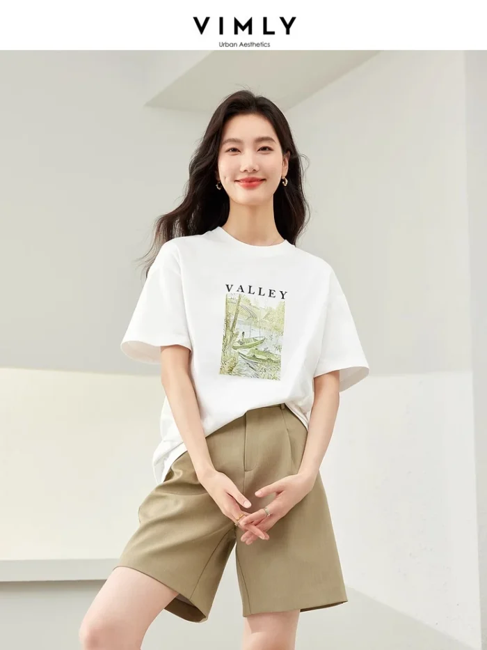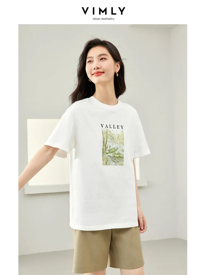 Be the first to review “Vimly Cotton 100% White Printed T-shirts for Women 2024 Summer Short Sleeve Pullovers Casual Womens Top Female Clothes M6866” Cancel reply