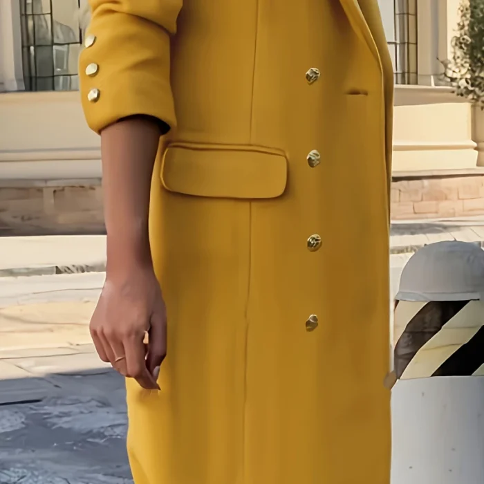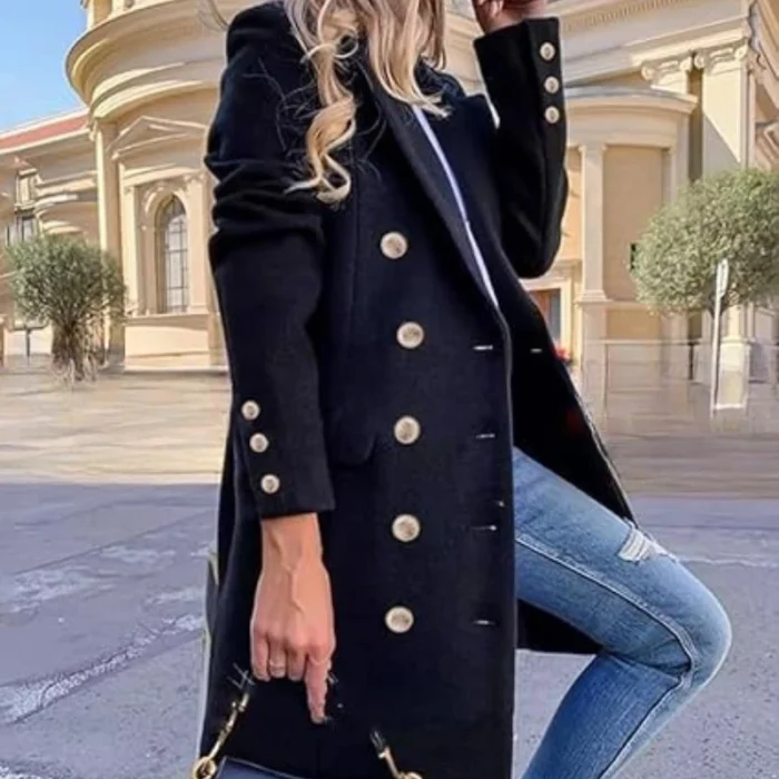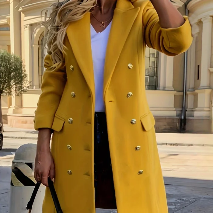 Women’s Double-breasted Lapel Coat Elegant Thermal Solid Long Sleeve Trench Coats Jackets For Fall & Winter Women’s Clothing