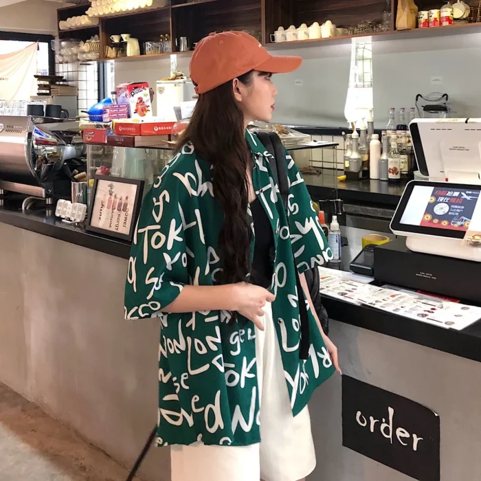 Be the first to review “Women’s Fashion Casual Loose Short Sleeve Shirt New Summer Retro Hong Kong Style T-shirt Hip Hop Alphabet Print Shirt Half Sleev” Cancel reply